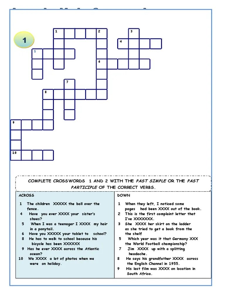 53407 Irregular Verbs Crossword Puzzles