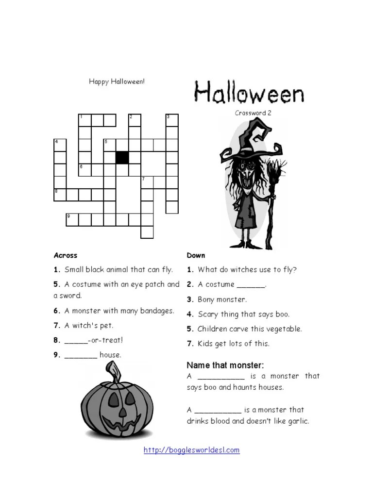 Halloween Crossword for Beginners Halloween worksheets, Halloween